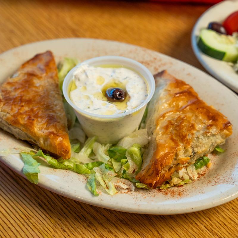 Tender beef slices, onions, tomatoes & lettuce on pita bread, topped with our homemade tzatziki sauce