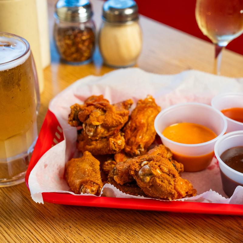 Mild, hot, or barbecue sauce with choice of ranch or blue cheese